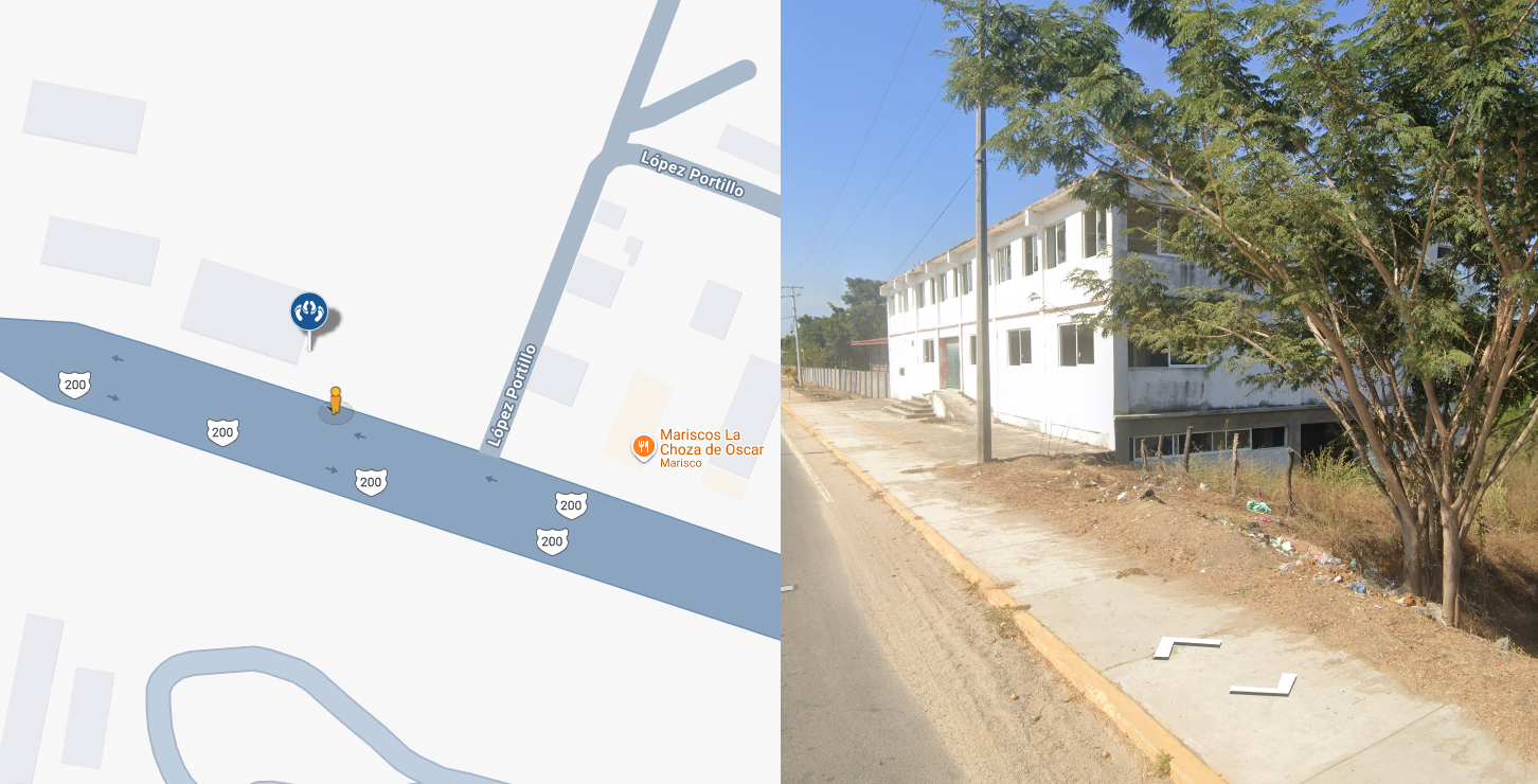 Edificio abandonado, contiene un piso por debajo del nivel del del asfalto, asi que prácticamente oculto de los trausentes