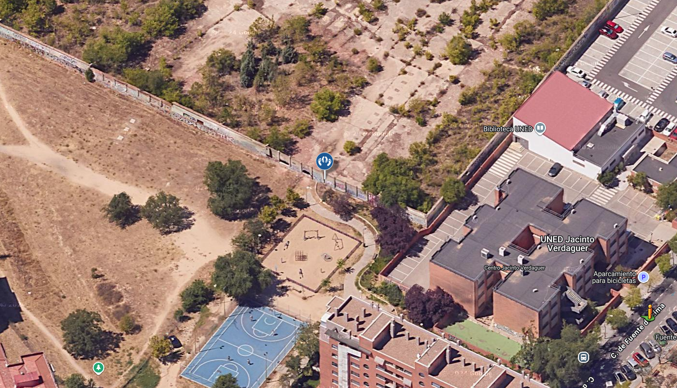 Es un parque con un descampado por el q se accede en un agujero grande que hay en la pared, se puede ir a cualquier hora que está casi siempre sólo.